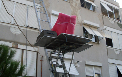 - Balkonların altına asansörlü nakliyat aracının yanaşamaması durumunda uygunsa salon veya oda pencerelerinin orta camı çıkartılıp asansör kurulur.